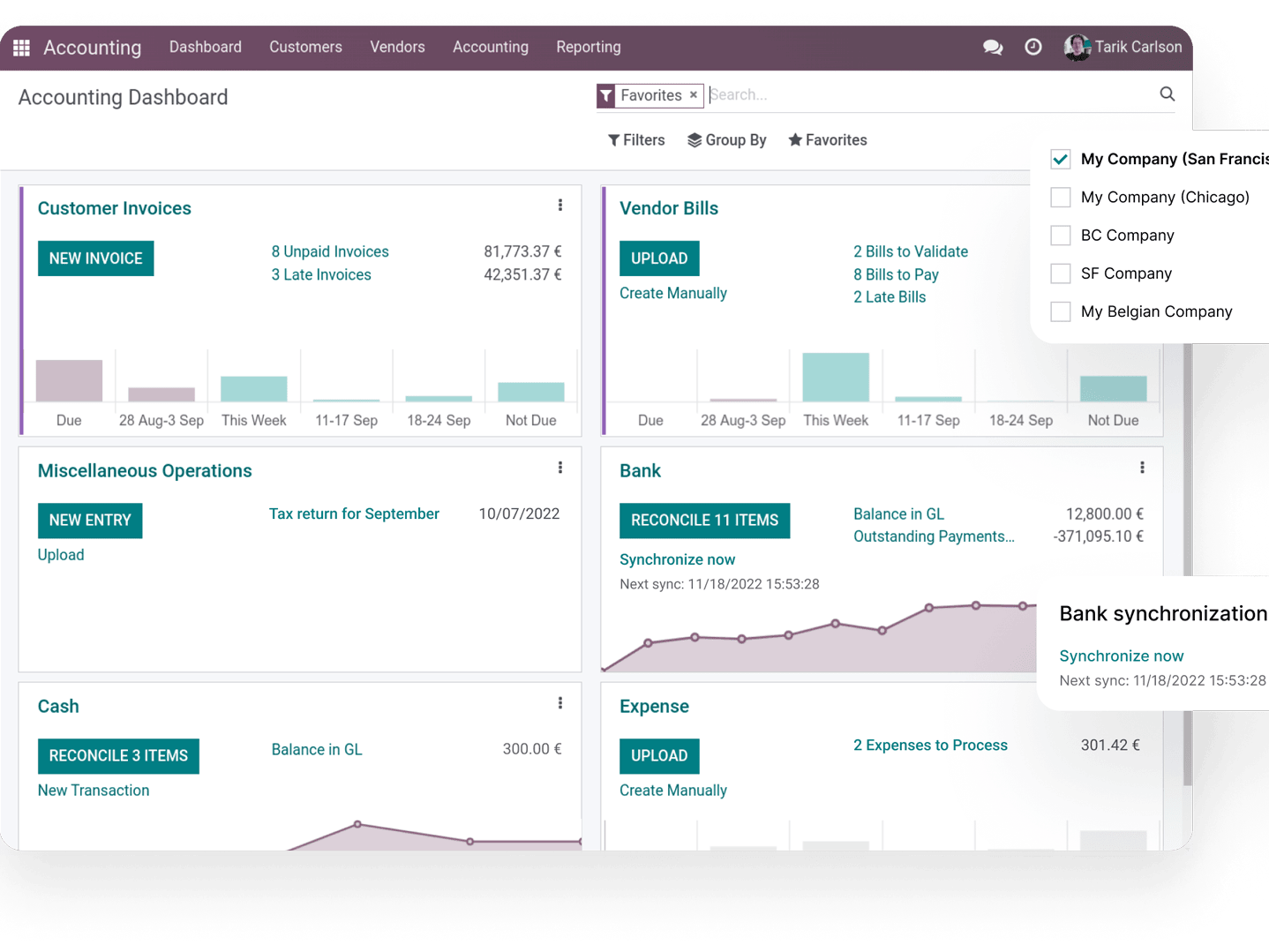 La comptabilité est un travail qui prend beaucoup de temps ? Désormais, ce ne sera plus le cas. Avec le logiciel de comptabilité Odoo de Dynapps, vous pouvez vous aussi opter pour une comptabilité automatisée. Synchronisez automatiquement vos relevés bancaires avec votre banque ou importez des fichiers et gagnez du temps car 95 % des débits sont effectués automatiquement. Gérez également les factures de vos fournisseurs et obtenez une prévision claire de vos créances futures.